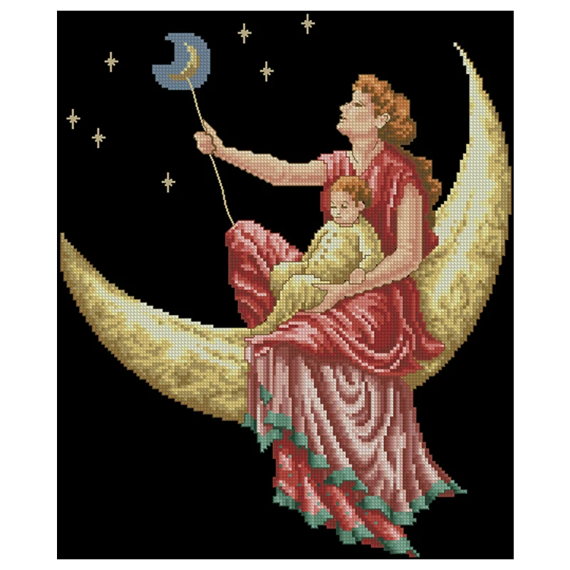 Наборы для вышивки крестиком Moon Maiden, наборы для вышивки, Женская фея, ангел, звезды, мама и дочь, 105-20, домашний декор сделай сам