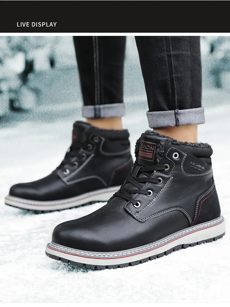 Мужские кожаные ботинки, модные мужские зимние ботинки, сохраняющие тепло ботинки, плюшевые рабочие ботинки до щиколотки, уличные водонепроницаемые мужские зимние ботинки