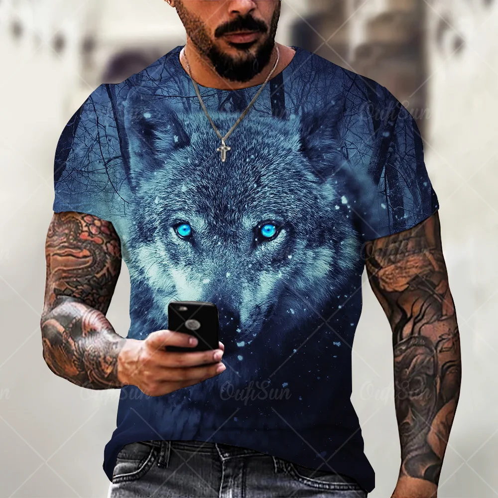 Летняя модная мужская футболка с 3D-принтом волка, трендовая Повседневная Уличная футболка с круглым вырезом и коротким рукавом в стиле Харадзюку, футболки большого размера, уличные Топы