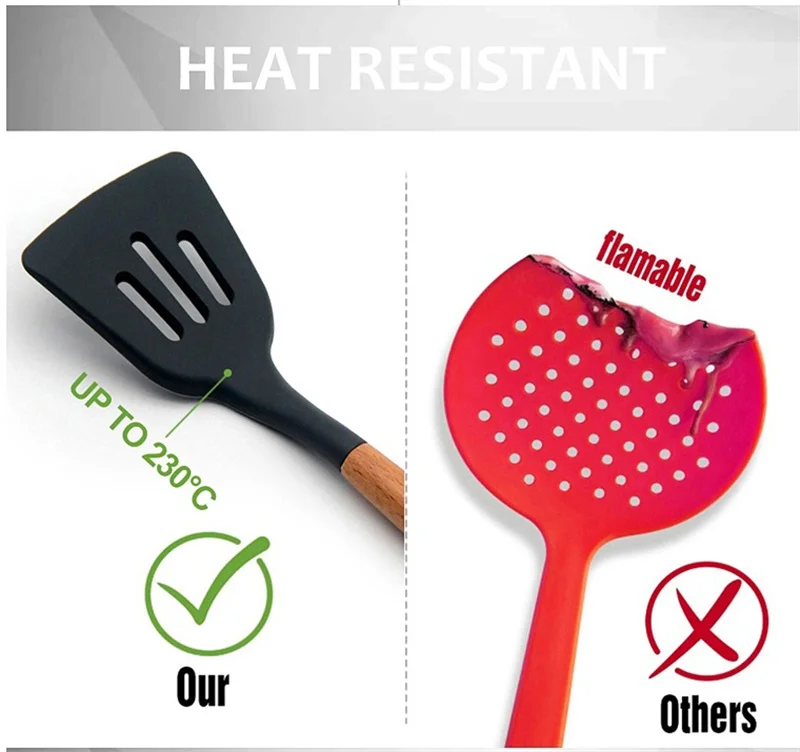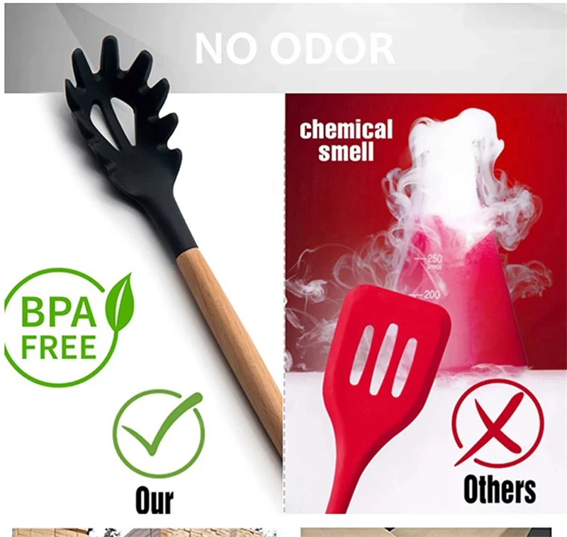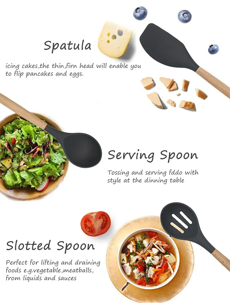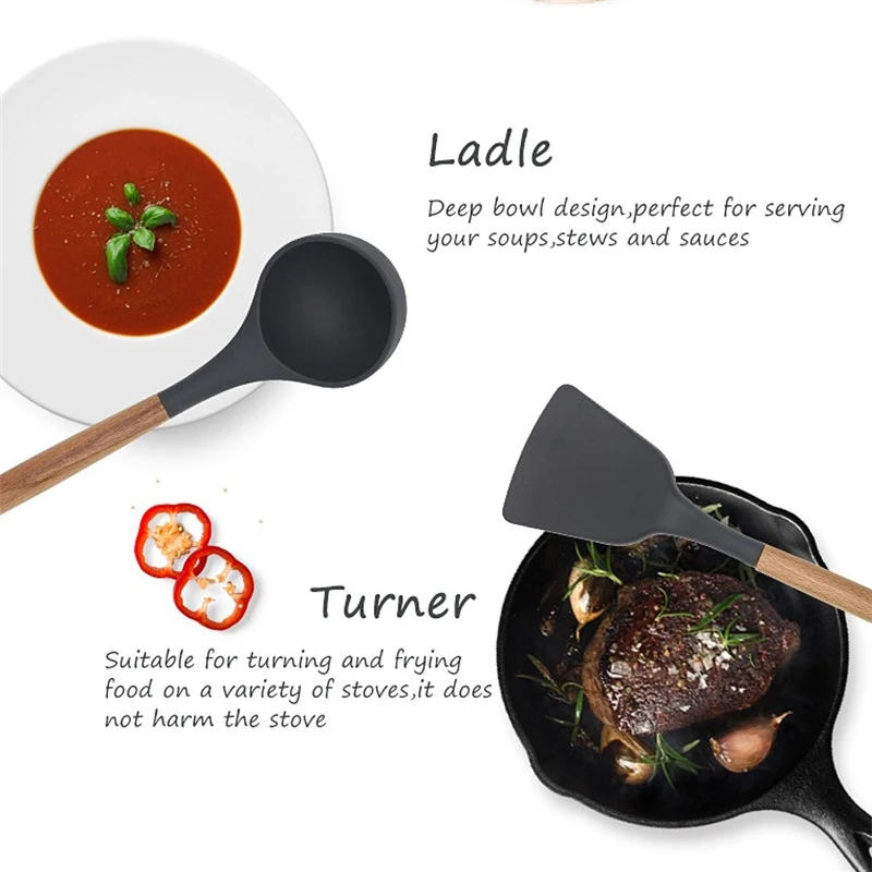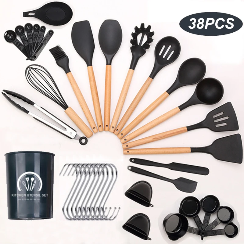 38 шт., силиконовые кухонные принадлежности с деревянной ручкой