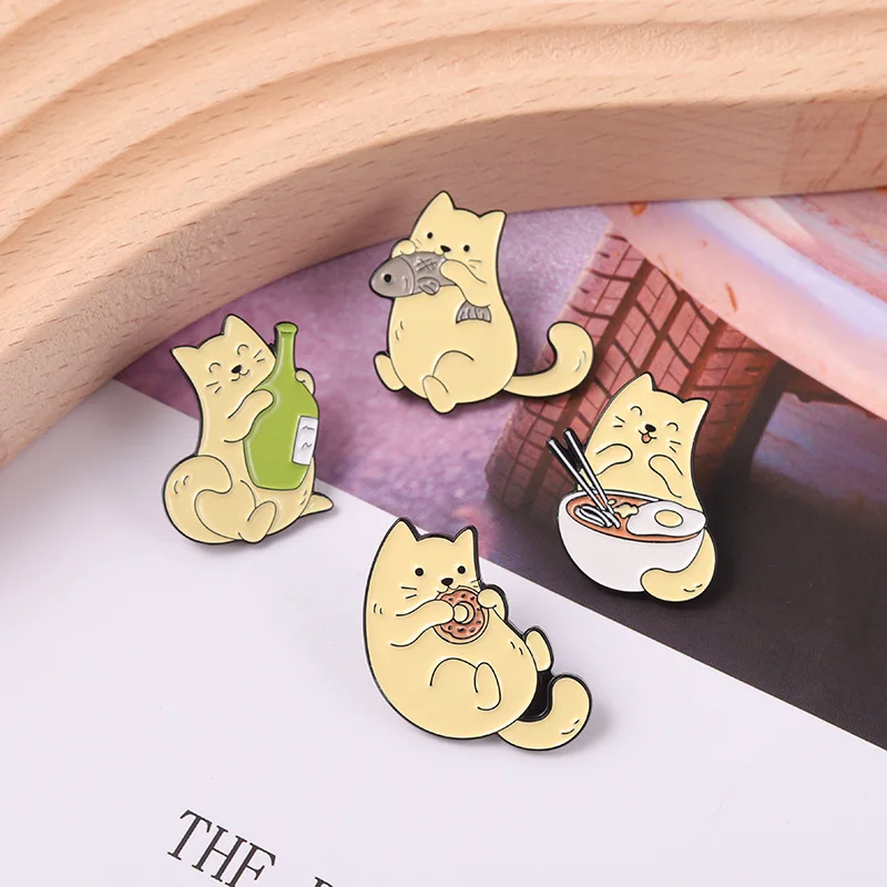 Эмалированные булавки в виде пищевой кошки, большая миска, широкая ...