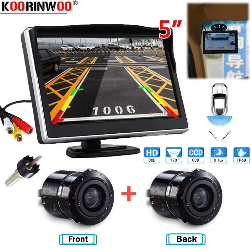 Система помощи при парковке Koorinwoo, Видеосистема 12 В, автомобильный ЖК-монитор, Передняя камера, камера заднего вида, камера заднего вида
