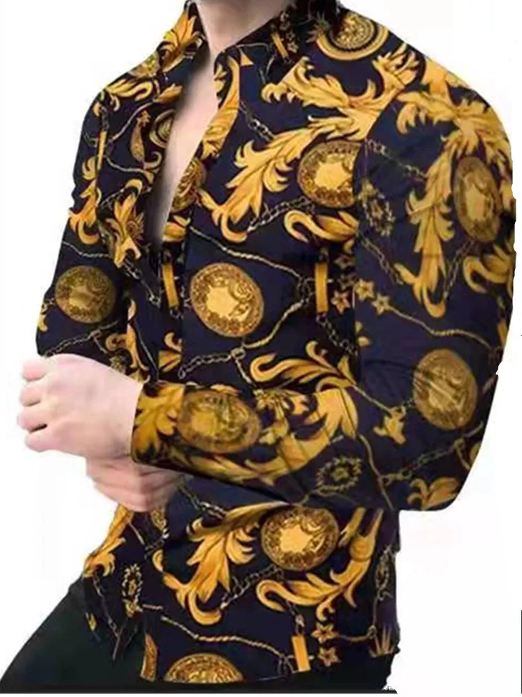 Осенняя роскошная мужская рубашка с принтом короны, новинка 2021, ж...