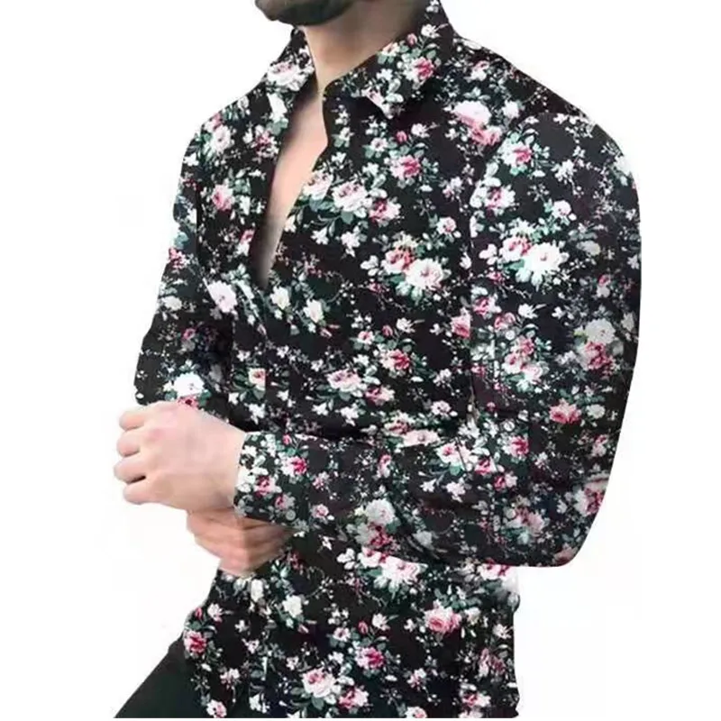 Новинка 2021, осенняя мужская Повседневная рубашка с цветочным прин...