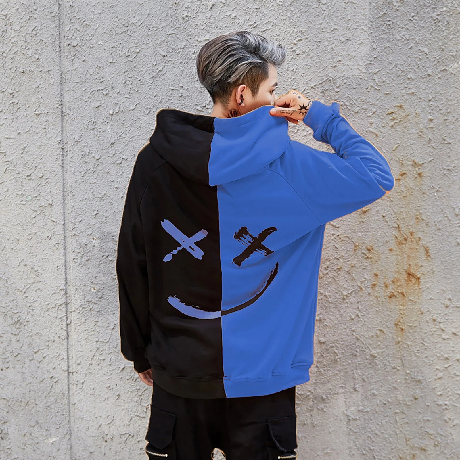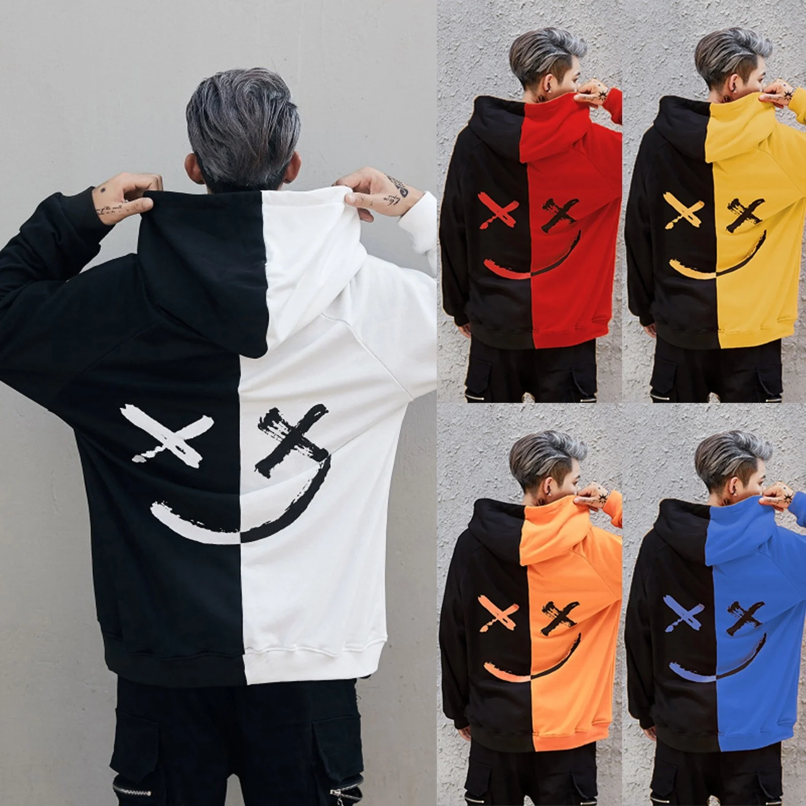 Толстовка мужская с капюшоном, повседневный Свободный Топ в стиле хип-хоп, с длинным рукавом, с блокировкой цвета, Спортивная уличная одежда, весна-осень