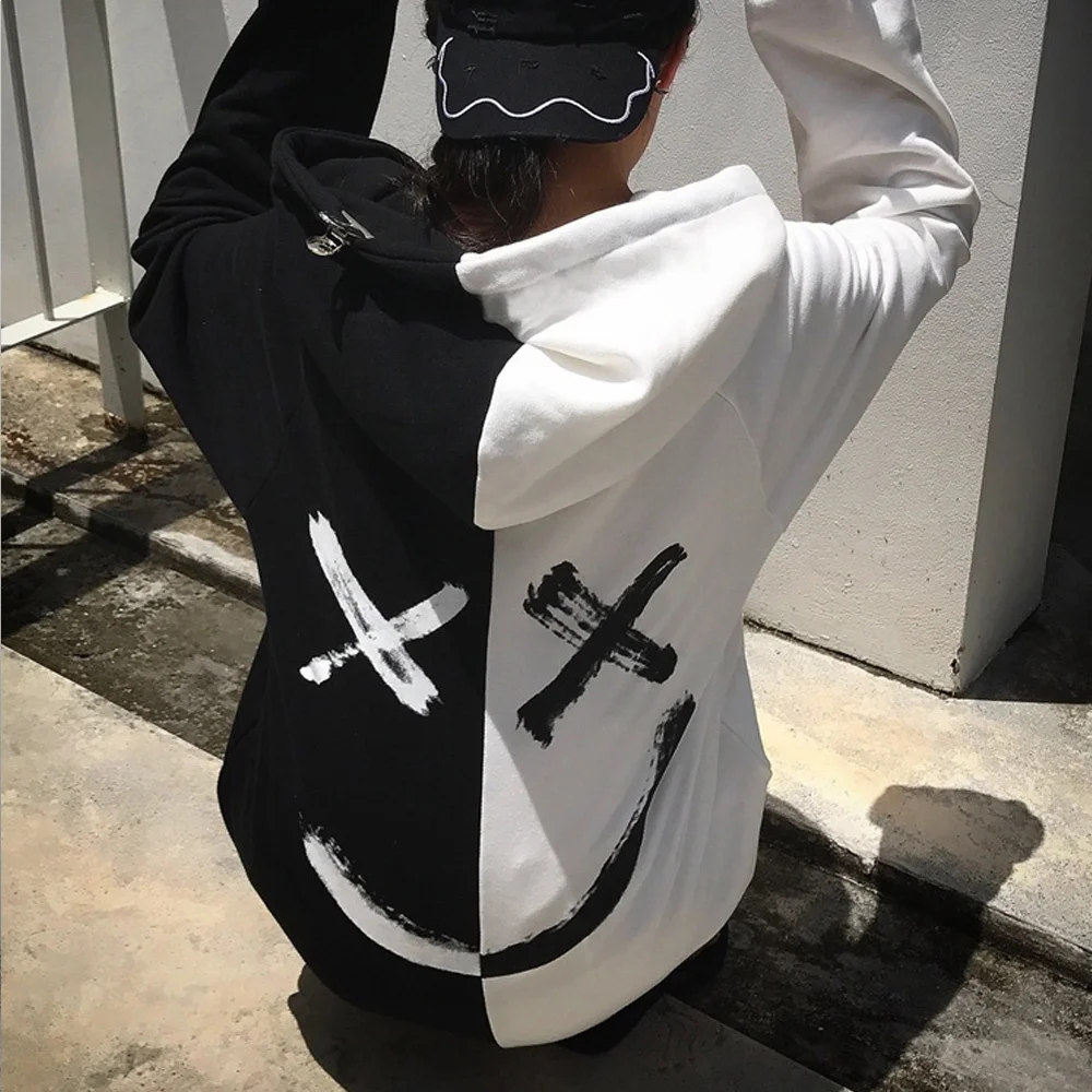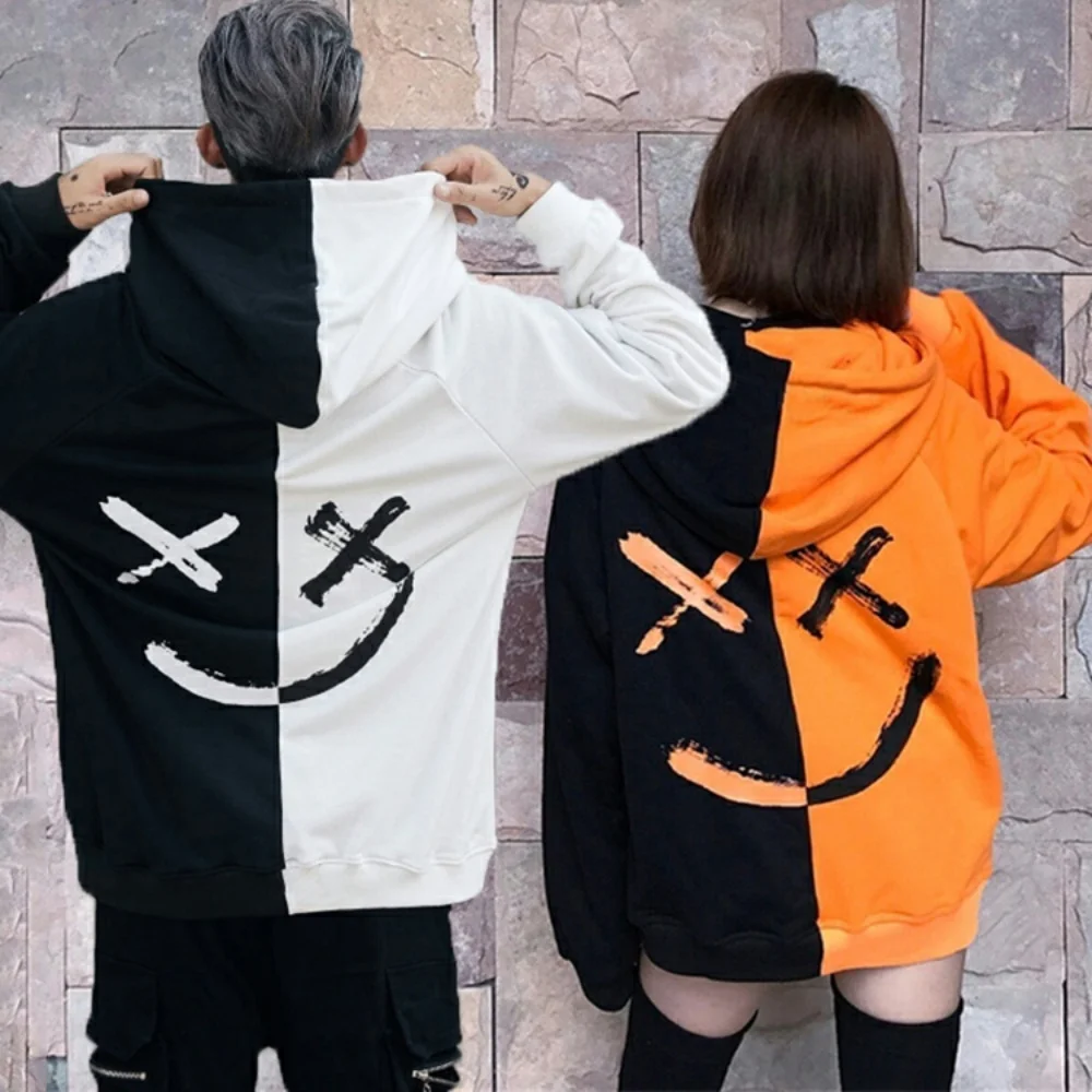 Толстовка Мужскаяженская с капюшоном, Модный свитшот в стиле пэчворк, с принтом счастливой улыбки, пуловер в стиле хип-хоп, уличная одежда для пар