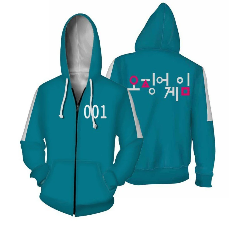 Костюм для косплея из игры кальмар для мужчин и женщин, толстовка с 3D рисунком, свитшот, куртка на молнии, уличная одежда, Осеннее повседневное пальто, школьная форма, 067, 456