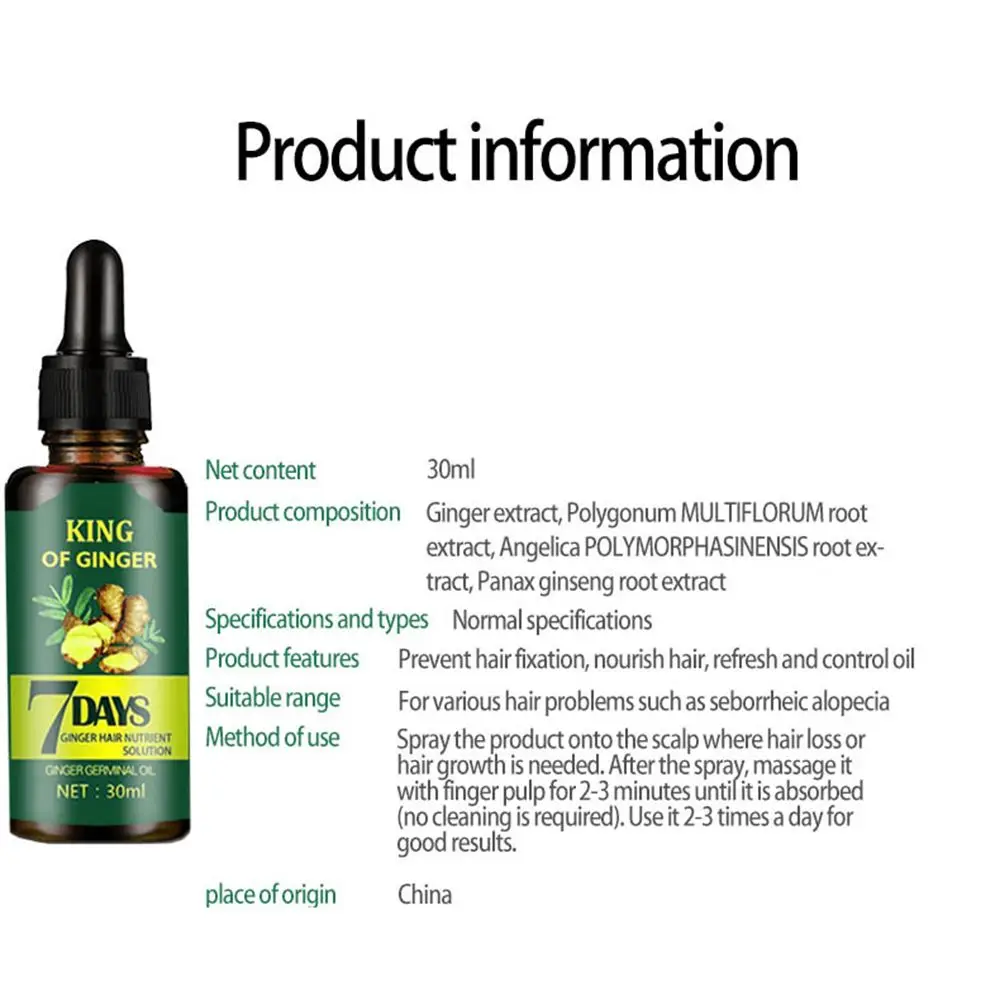 Этот продукт содержит эссенцию экстракта имбиря, с различными питательными ингредиентами, питательный корень волос, поддерживающий здоровые и питательные волосы, для создания натуральных густых волос!