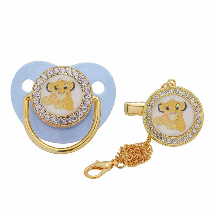 Новая качественная Соска-Соска с изображением короля льва Симбы и зажимом для соски Disney, новые роскошные Детские пустышки с металлическими украшениями, силиконовые соски для соски Bebe