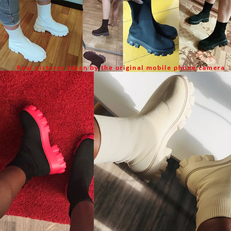 Носки для пары, обувь, новинка 2021 года, женская зимняя обувь для девочек, повседневная обувь на толстой подошве, сетка большого размера, красные вязаные короткие сапоги, женские большие размеры