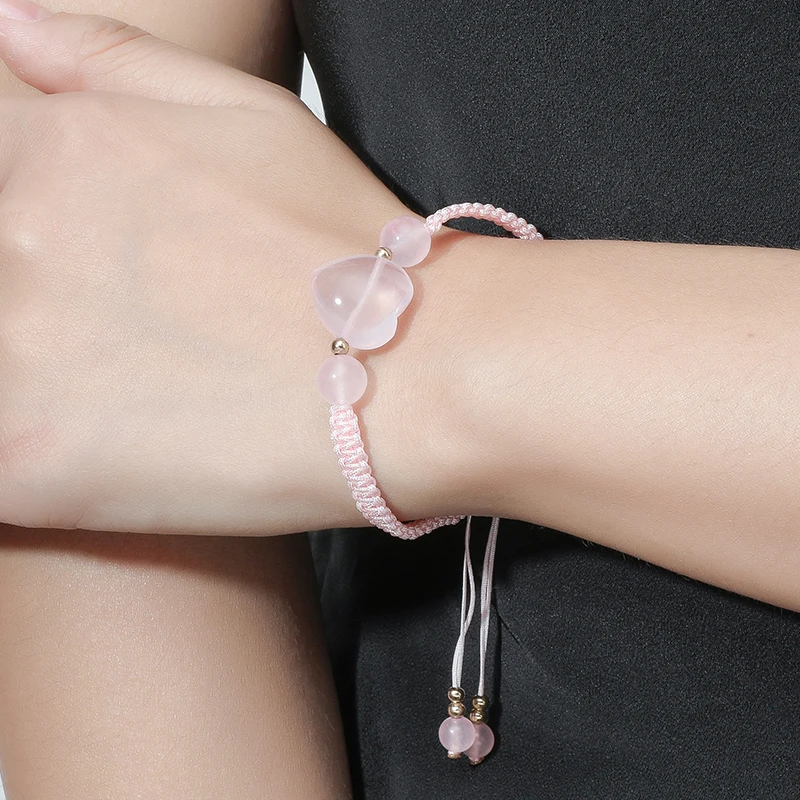 Браслет JD из натурального розового кварца в форме сердца, регулируемое ювелирное изделие ручной работы