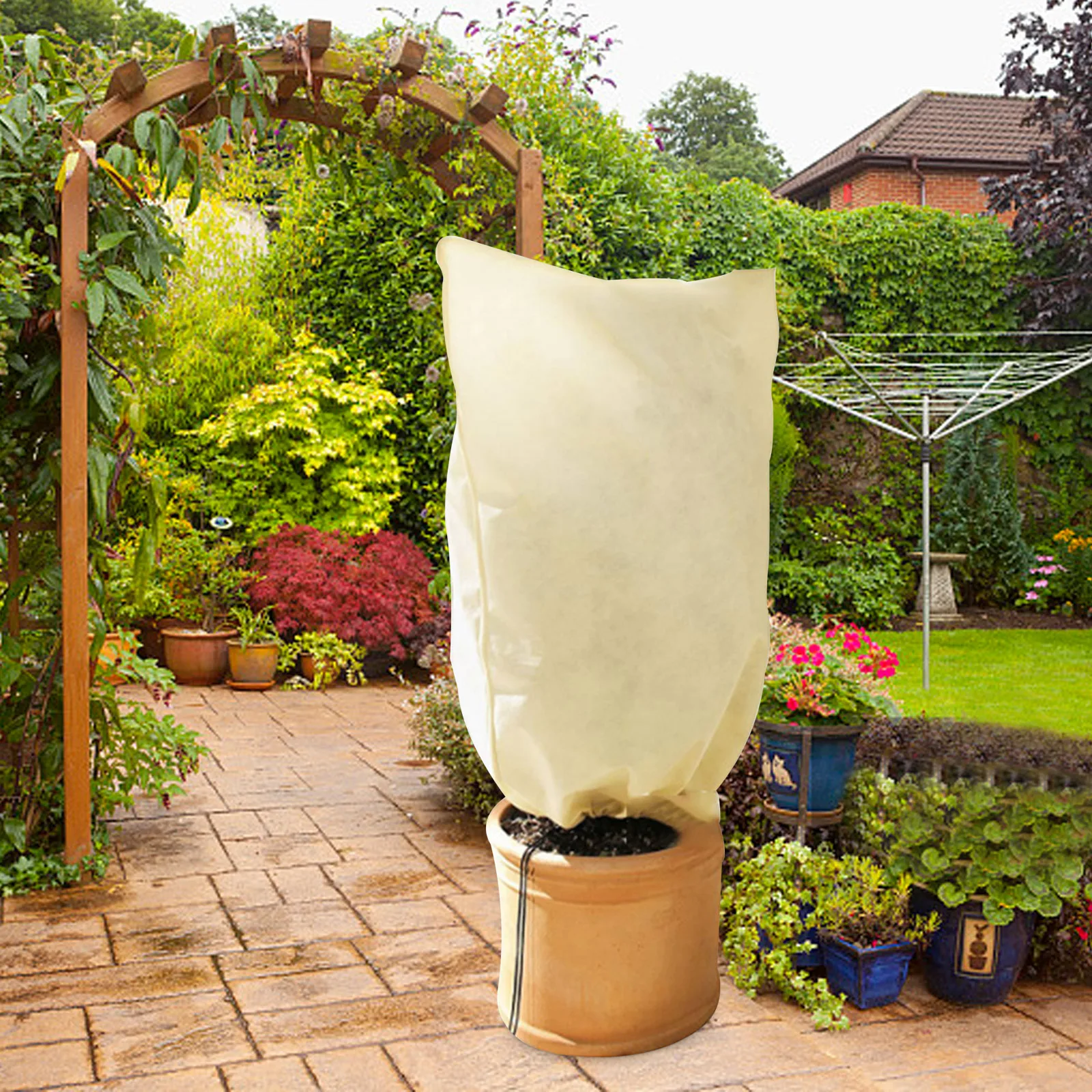 Специальная конструкция с завязками в нижней части крышки завода может быть легко покрыта, и вы можете отрегулировать размер в соответствии с растениями.