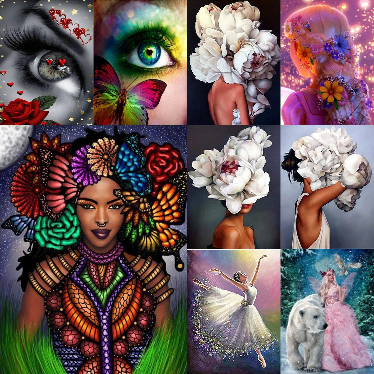 5D алмазная живопись девушка и цветочный узор, инкрустированный бри...