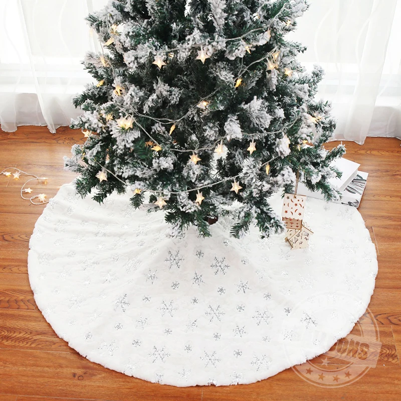 Юбка для рождественской елки 90-122 см из белого искусственного меха на Рождество, Новый Год, украшения для рождественской елки, плюшевые вышитые бисером деревья