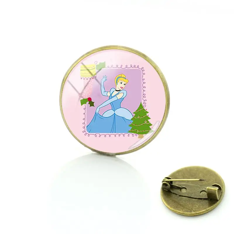 Брошь в стиле Диснея принцессы Микки, булавки, круглая стеклянная Ж...