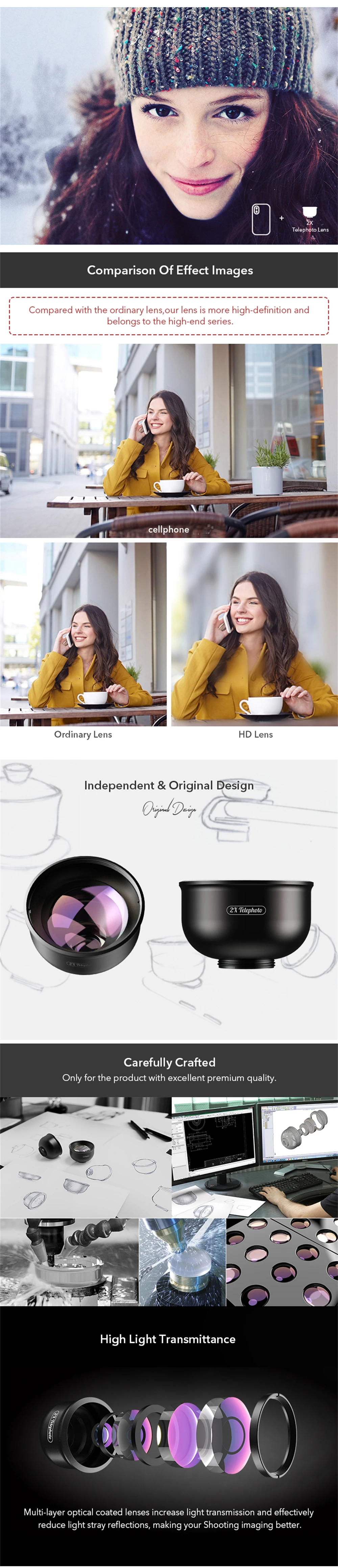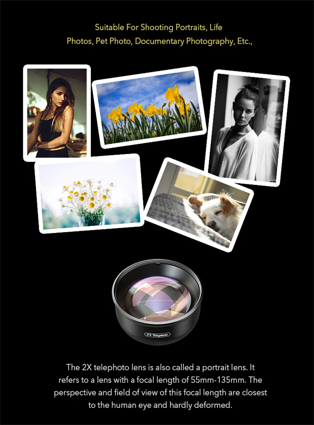 APEXEL 2X телефото, портретный объектив, профессиональный телескоп для телефона, телескопическая камера, телеобъектив для смартфона iPhone Samsung