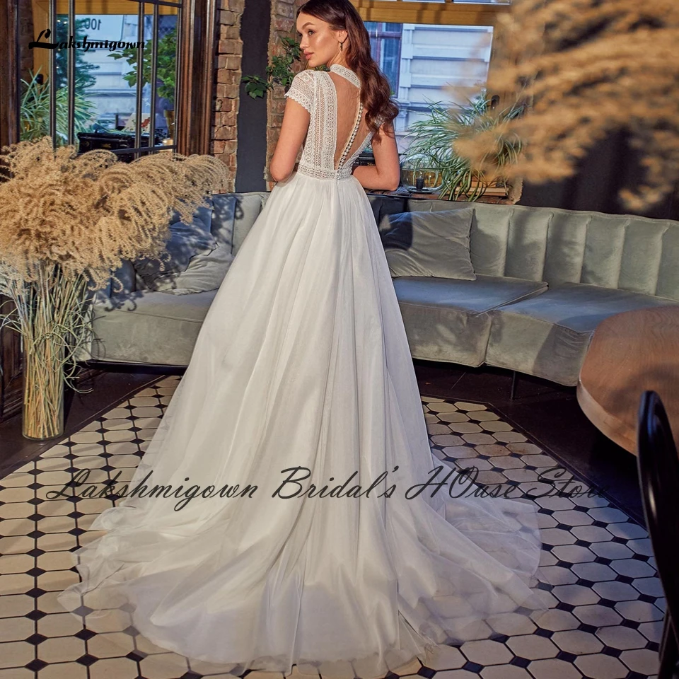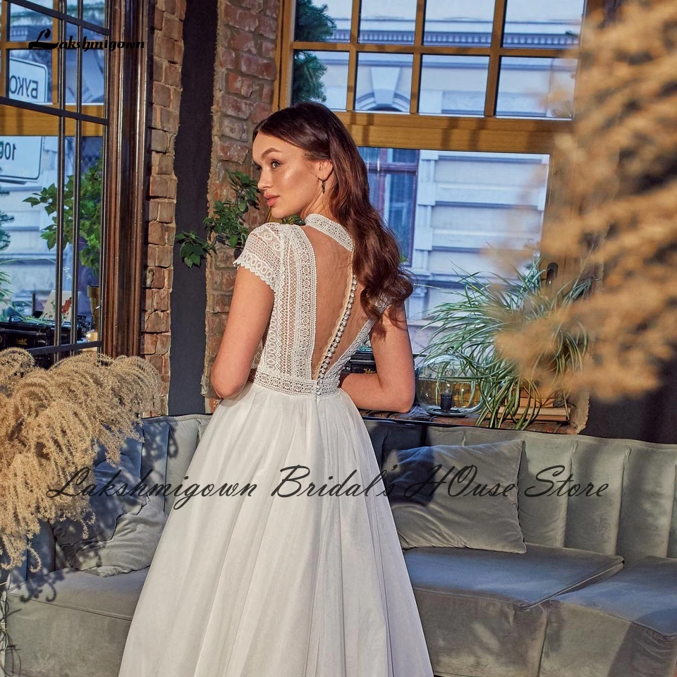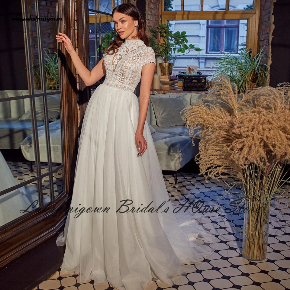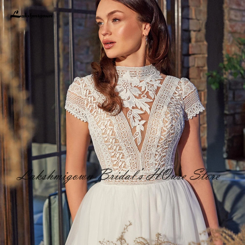 Lakshmigown искусственное свадебное платье в стиле бохо 2022, Винтажный кружевной лиф с высоким воротником, сексуальные свадебные платья, кепка с коротким рукавом