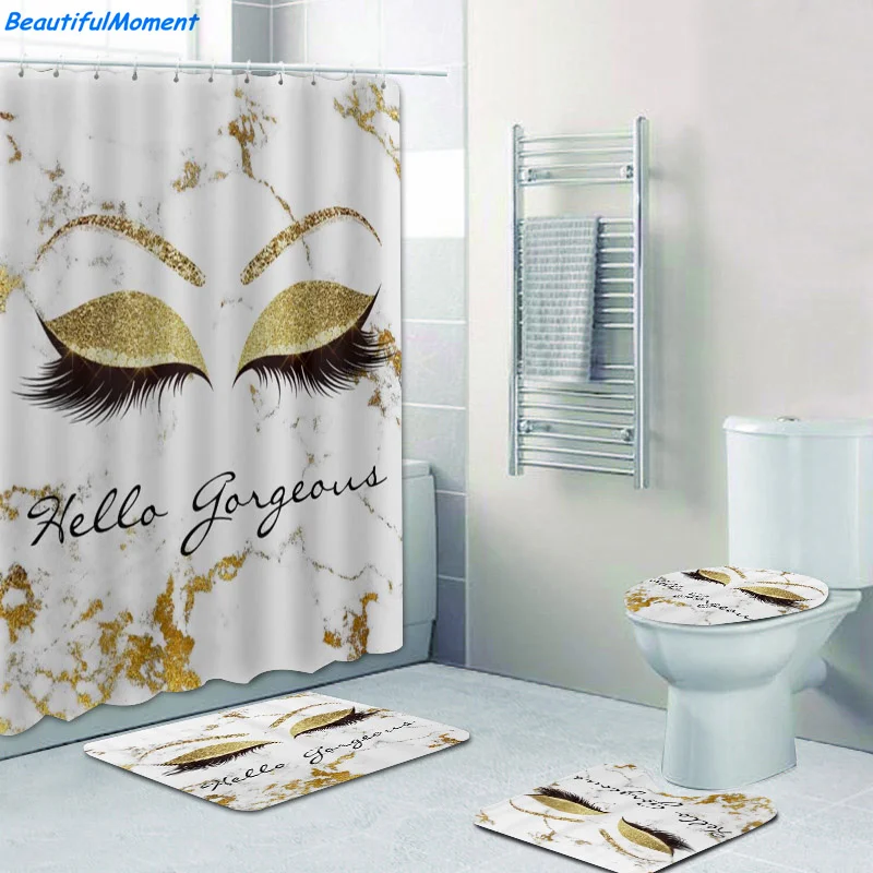 Занавеска для душа с ресницами для девочек, розовое золото, занавес...
