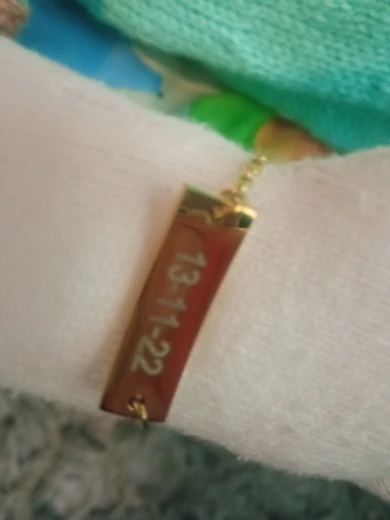 Прекрасно! Очень хорошая и точная гравировка. Я очень доволен и очень счастлив. Это было не для девушки. Я посвящаю себя изготовлению тканевых кукол, и я всегда ставлю на них браслет, выгравированный своим именем и датой, на которой он возродилсяЯ куплю больше! Конечно! Спасибо!