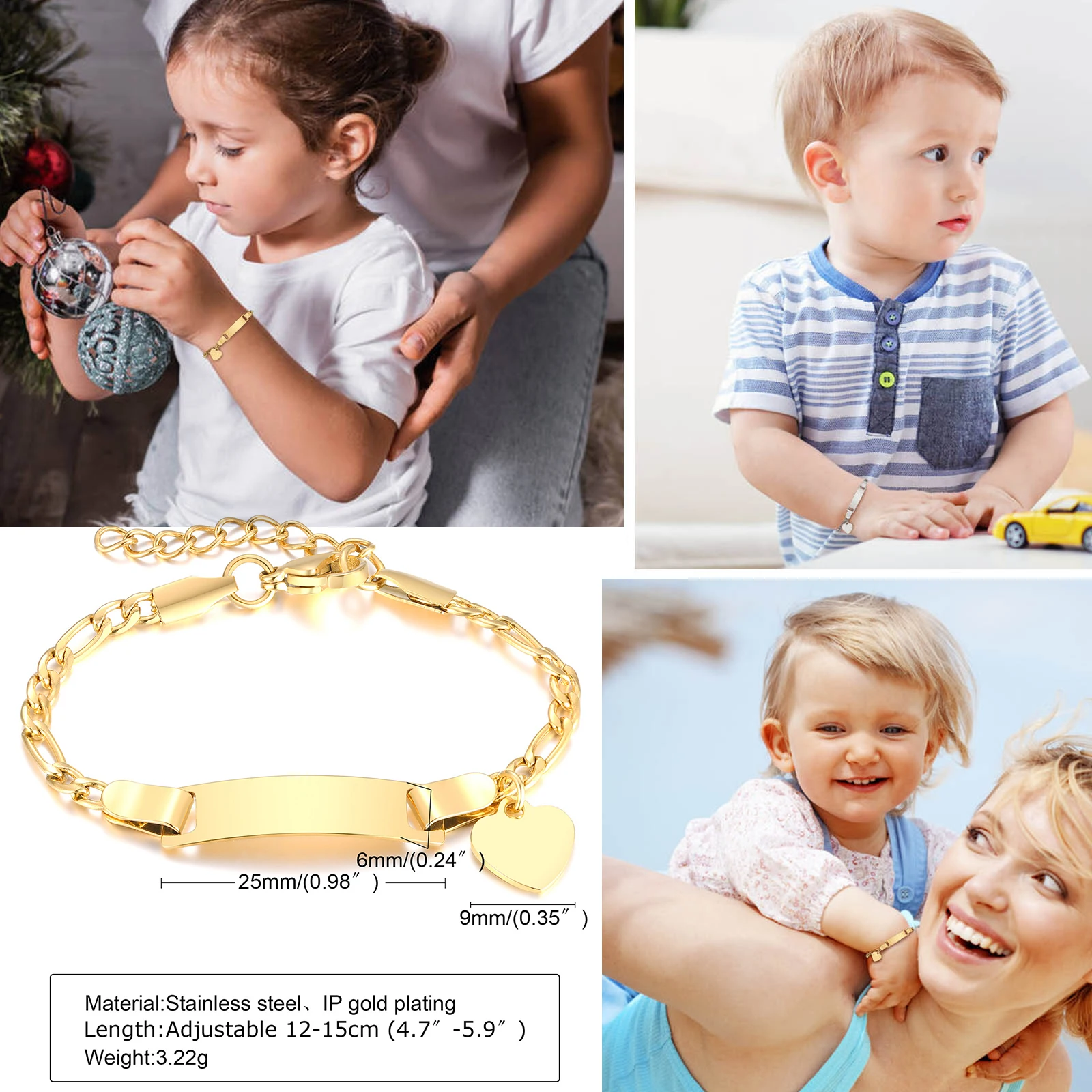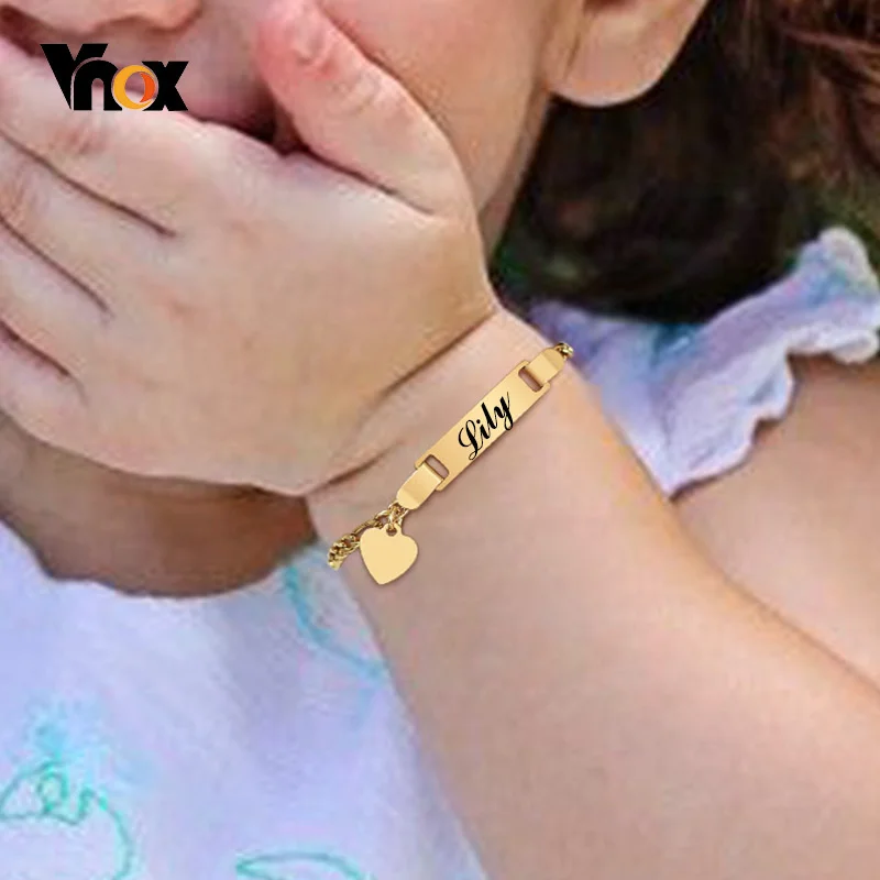 Браслет Vnox на заказ, браслет с подвеской в виде сердца из нержавеющей стали для детей, мальчиков и девочек, подарок для новорожденных