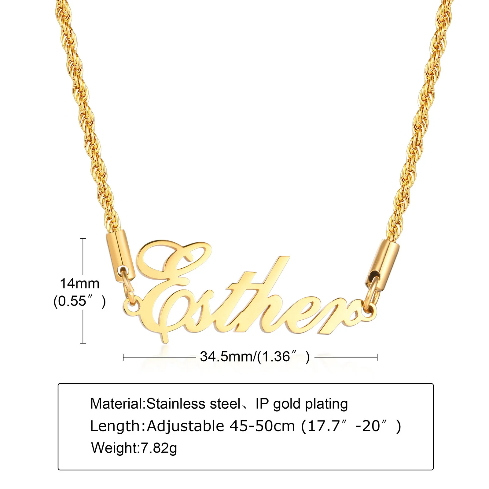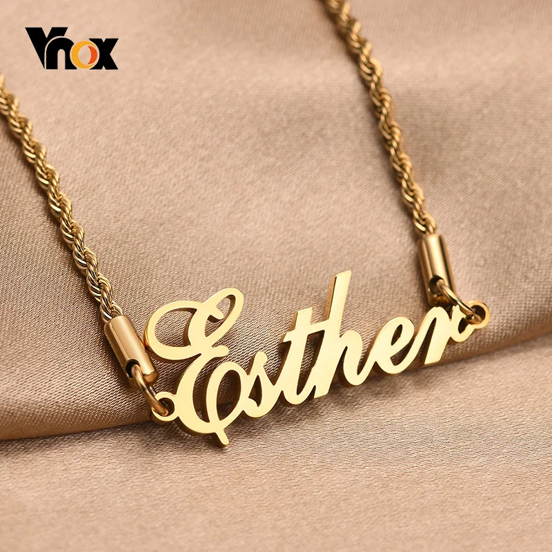 Женское ожерелье с именем на заказ Vnox, золотой кулон из нержавеющей стали с именем на цепочке, шикарный изящный значимый подарок
