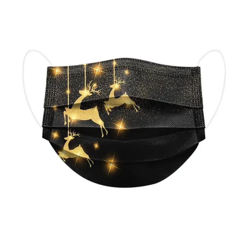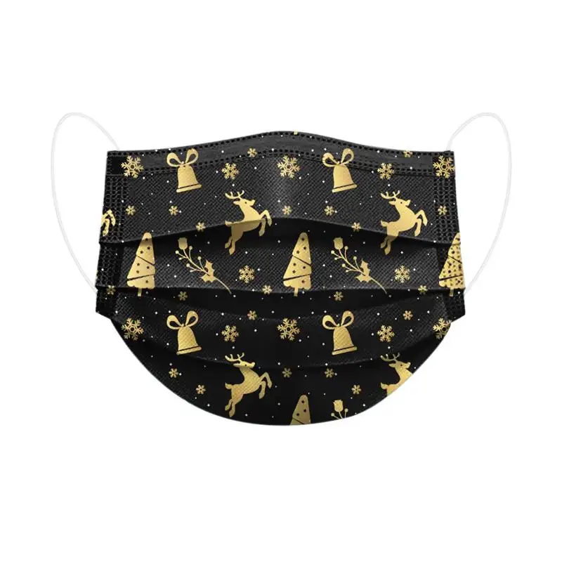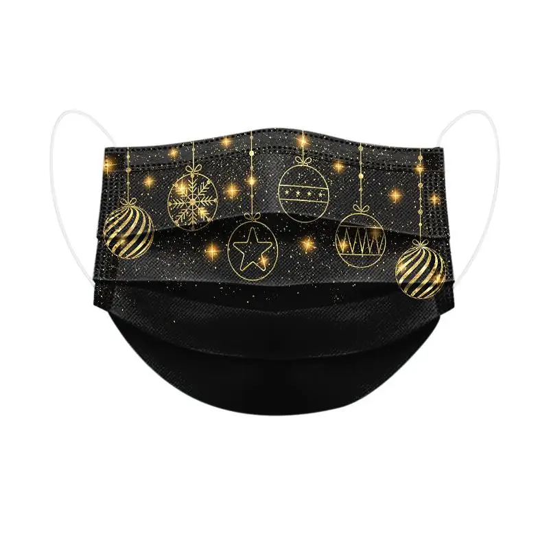 Новинка 2022 маска для взрослых Золотая Рождественская 50 шт. черная одноразовая маска для лица с мультяшным принтом 3-слойная защитная маска для рта тушь для ресниц