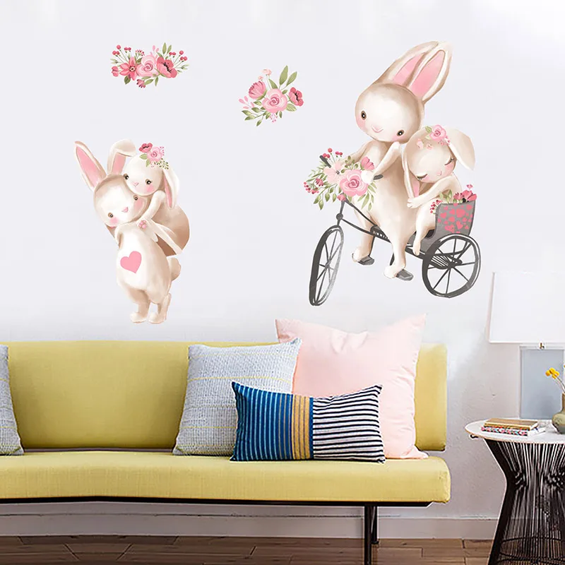 Ручная роспись, велосипед, кролик, мама и фотосессия для девочек, декор детской комнаты, Экологичные ПВХ наклейки на стену, украшение для дома