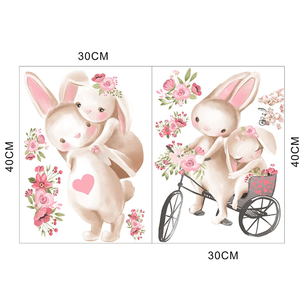 Милый кролик, цветок, настенные наклейки для детей, девочек, для де...