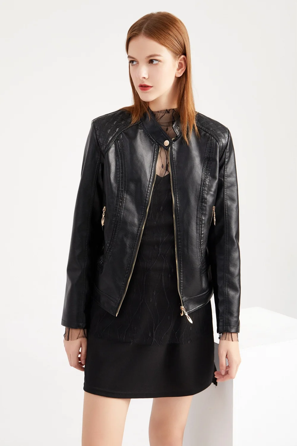 Куртка женская кожаная с воротником-стойкой, мотоциклетная куртка и...