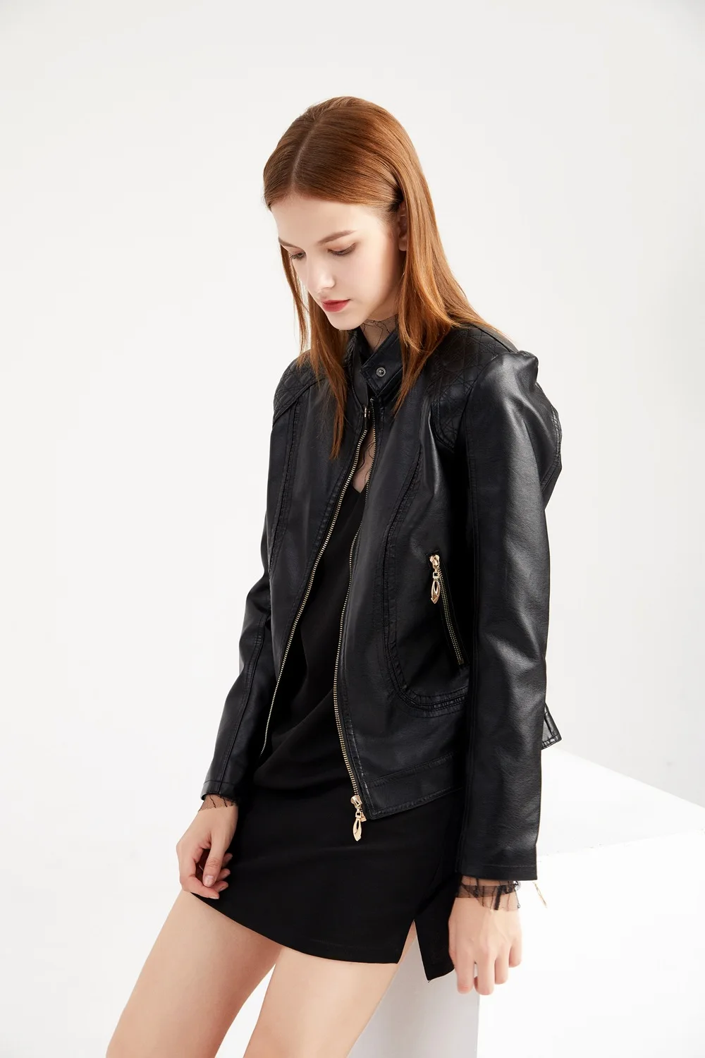 Женская куртка из искусственной кожи с воротником-стойкой, в европейском и американском стиле, весна-осень 2021