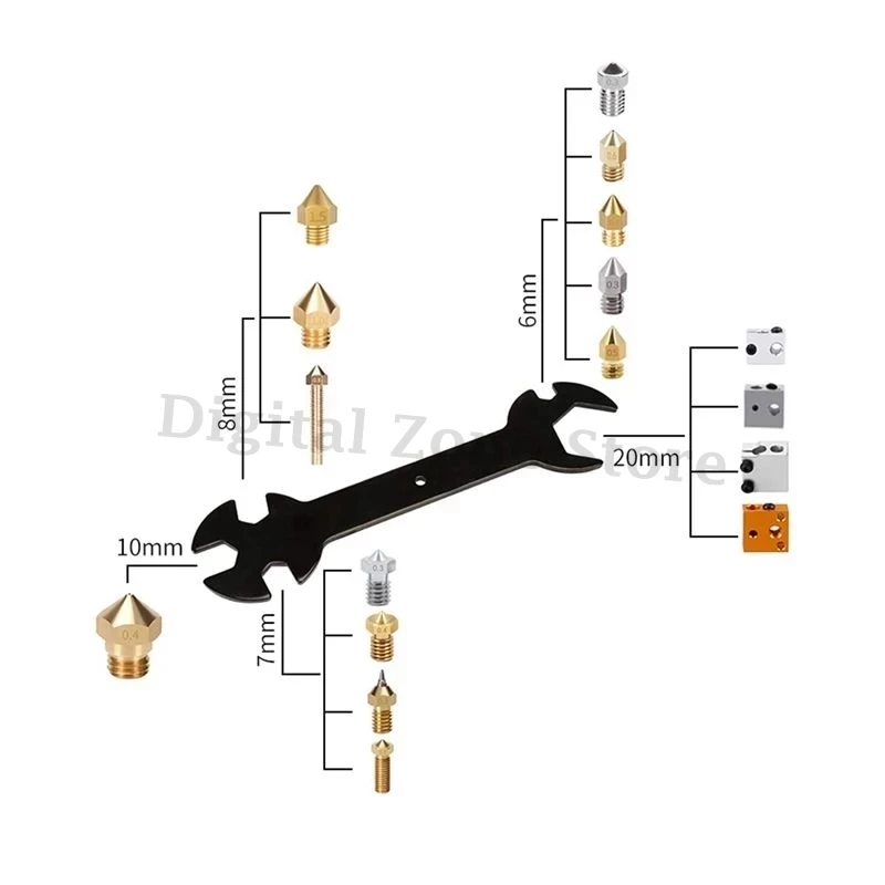 Гаечный ключ 5 в 1, многофункциональный стальной плоский ключ для нагревательного блока сопла V6 MK8 MK10, запчасти для 3D-принтера
