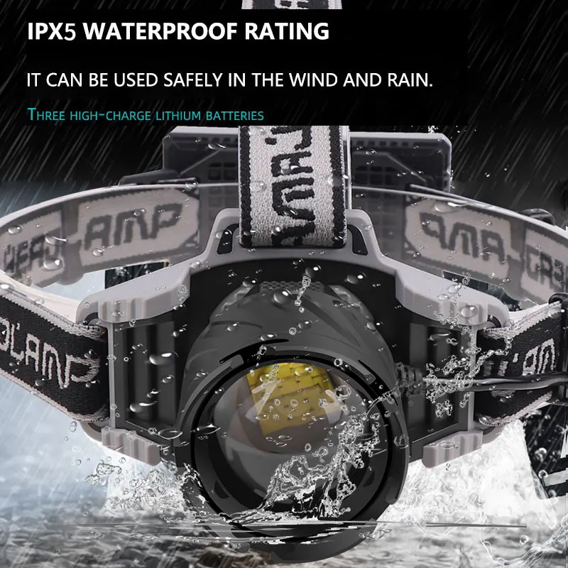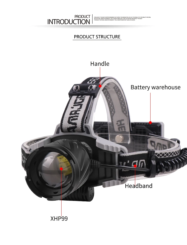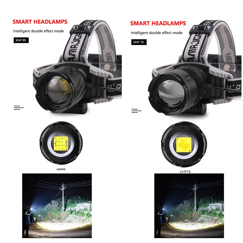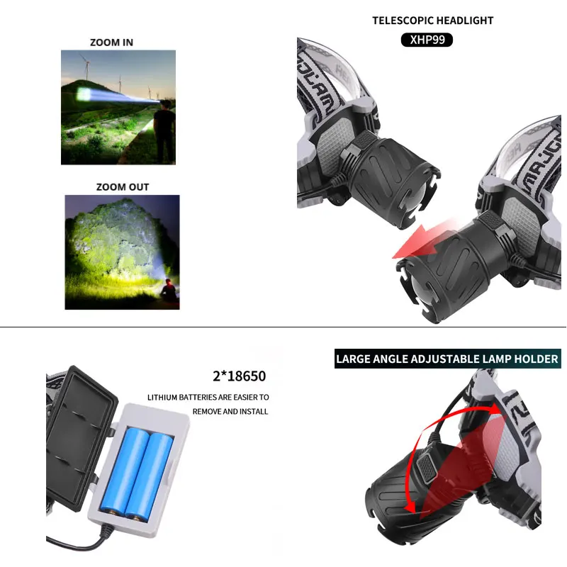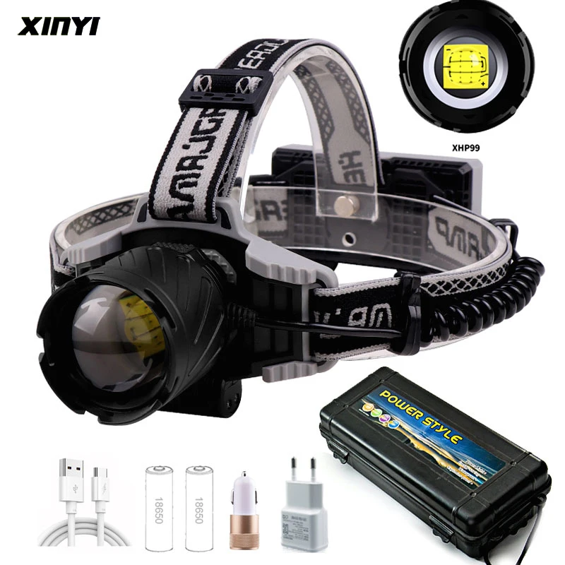 Фонарь налобный XHP99 Аккумуляторный с телескопическим увеличением и зарядным дисплеем