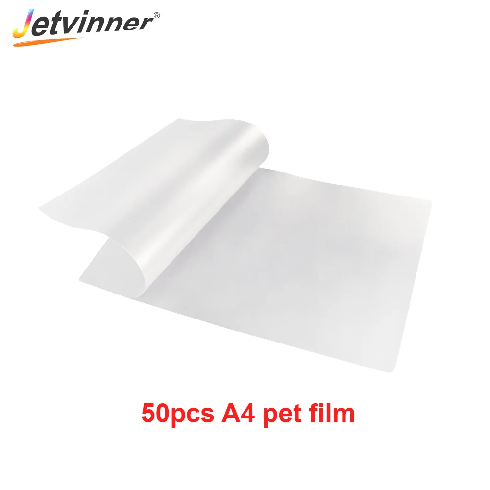Jetvinner 50 шт. А4 ПЭТ пленка DTF пленка для переноса для DTF принтера прямая теплопередача для L805 DTF принтера Двухсторонняя матовая