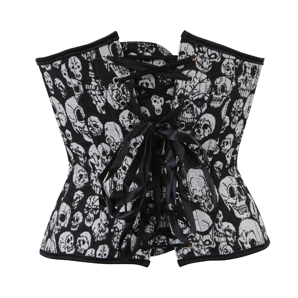 Корсет, бюстье, топы, корсет с принтом черепа, Женский корсет со стальными косточками под грудью в стиле стимпанк, тренировочный корсет, женский костюм