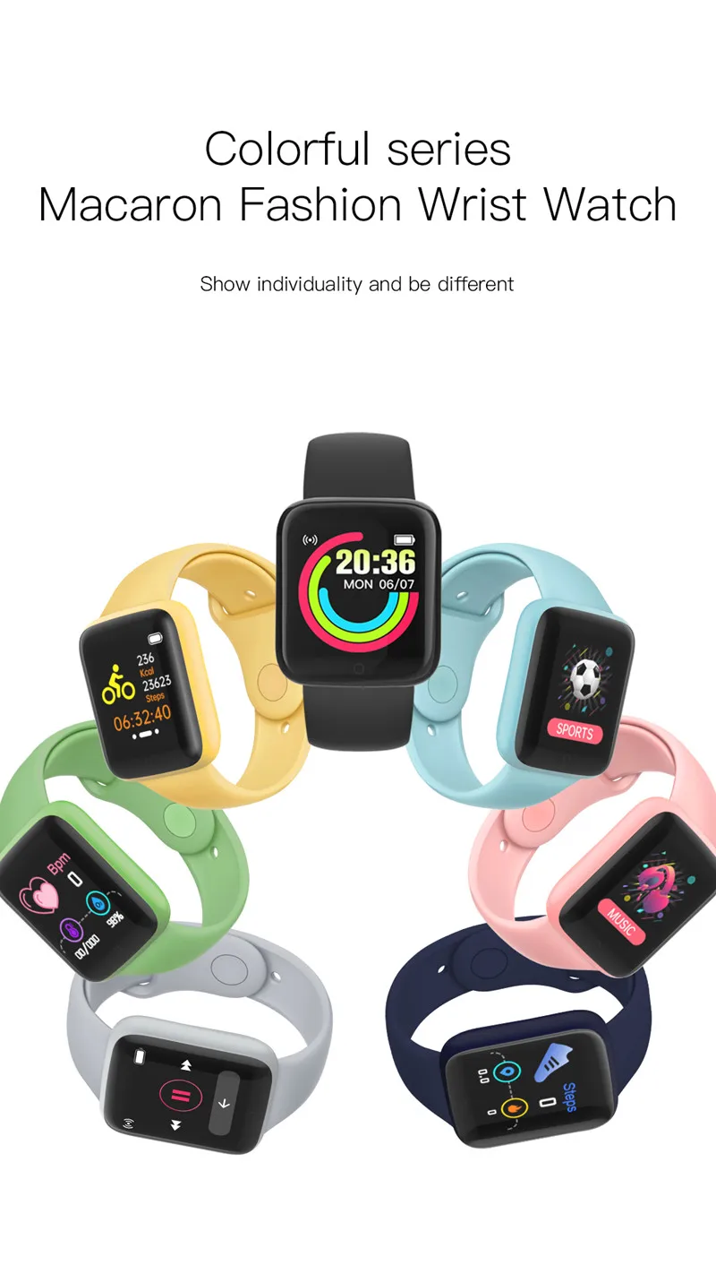 Y68 Смарт-часы 1,44 дюймов экран мужские и женские умные часы модные спортивные Смарт-часы Fitpro версия Заводская оптовая торговля Макарон часы