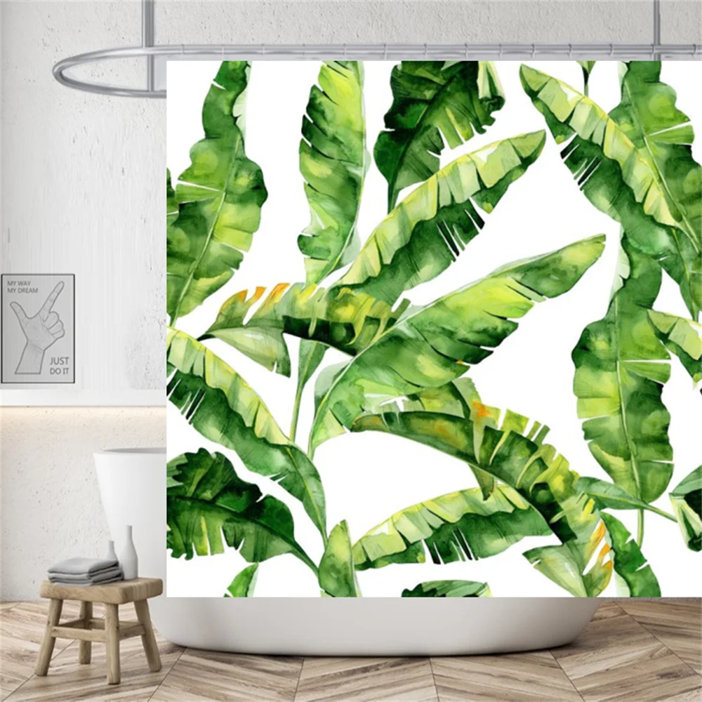 Занавеска для душа с зелеными листьями, 3d-занавеска в виде подсолн...