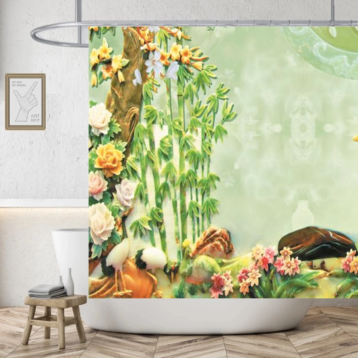 Штора для ванной с цветочным пейзажем, моющаяся Экологически чистая...
