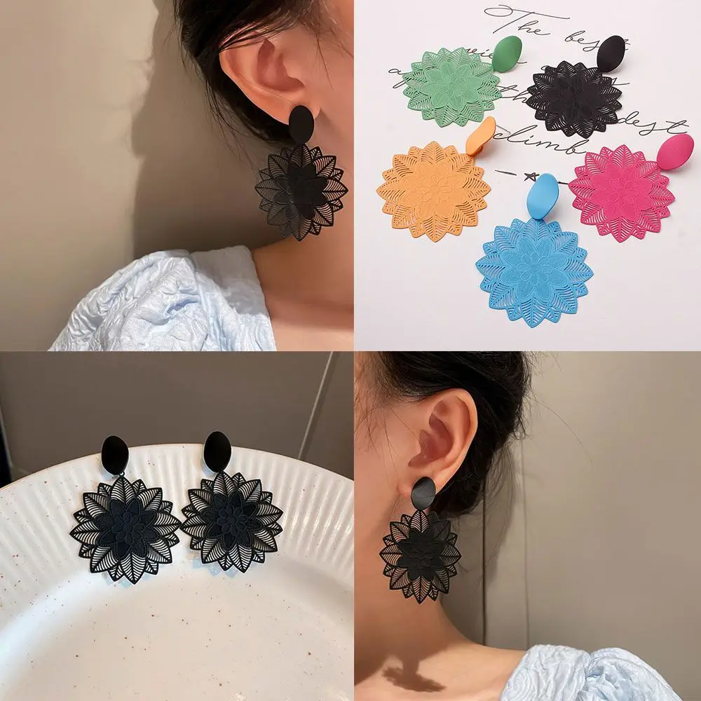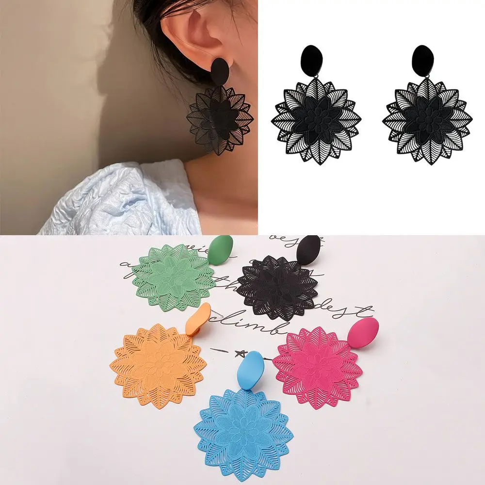 Новые женские серьги с крупным цветочным узором в винтажном стиле