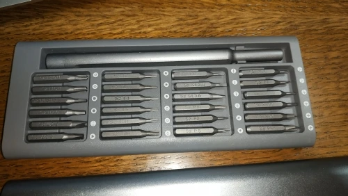 Заказывали на распродаже 11.11 и вот, посылка прибыла 2 декабря. Отслеживался каждый ее шаг. Долгожданная распаковка, в итоге получили замечательный набор отверток. Корпус металлический, открытие путем нажатия, сама основа для набора из пластика с магнитной вставкой для насадок, каждая насадка сидит довольно плотно и девушка с маникюром так просто не извлечёт из набора держатель))) Муж остался очень доволен набором.