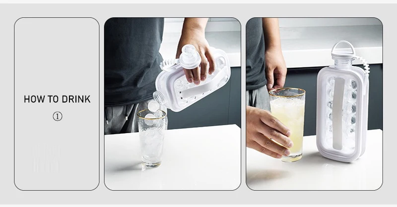 Сохраняйте напитки прохладными дольше, для коктейлей, кофе со льдом, чая со льдом, фруктового сока, пунша, воды и других напитков. Отлично подходит для домашних вечеринок, домашних баров, ресторанов, пляжей, праздничных мероприятий. Нетоксичный, без протечек, этот прочный поднос для льда не трескается и не ломается. Легко заполнять, снимать и чистить. Кувшин предназначен для заполнения водой легко, с 17 хоккейных шайб за раз. Крышка бутылки и корпус бутылки разработаны с цепочкой Анти-потери, которая может быть разобрана гибко и осуществляется более удобно. Плоская форма тела, легко брать одной рукой, для домашнего использования или для переноски автомобиля, Легко получить, не занимает места. Этот продукт изготовлен из пищевых тритановых материалов, и его легко чистить. Просто налейте в теплую воду (не слишком горячую) около 40 ℃, затем закройте крышку и встряхните ее, чтобы получить хороший чистый эффект.