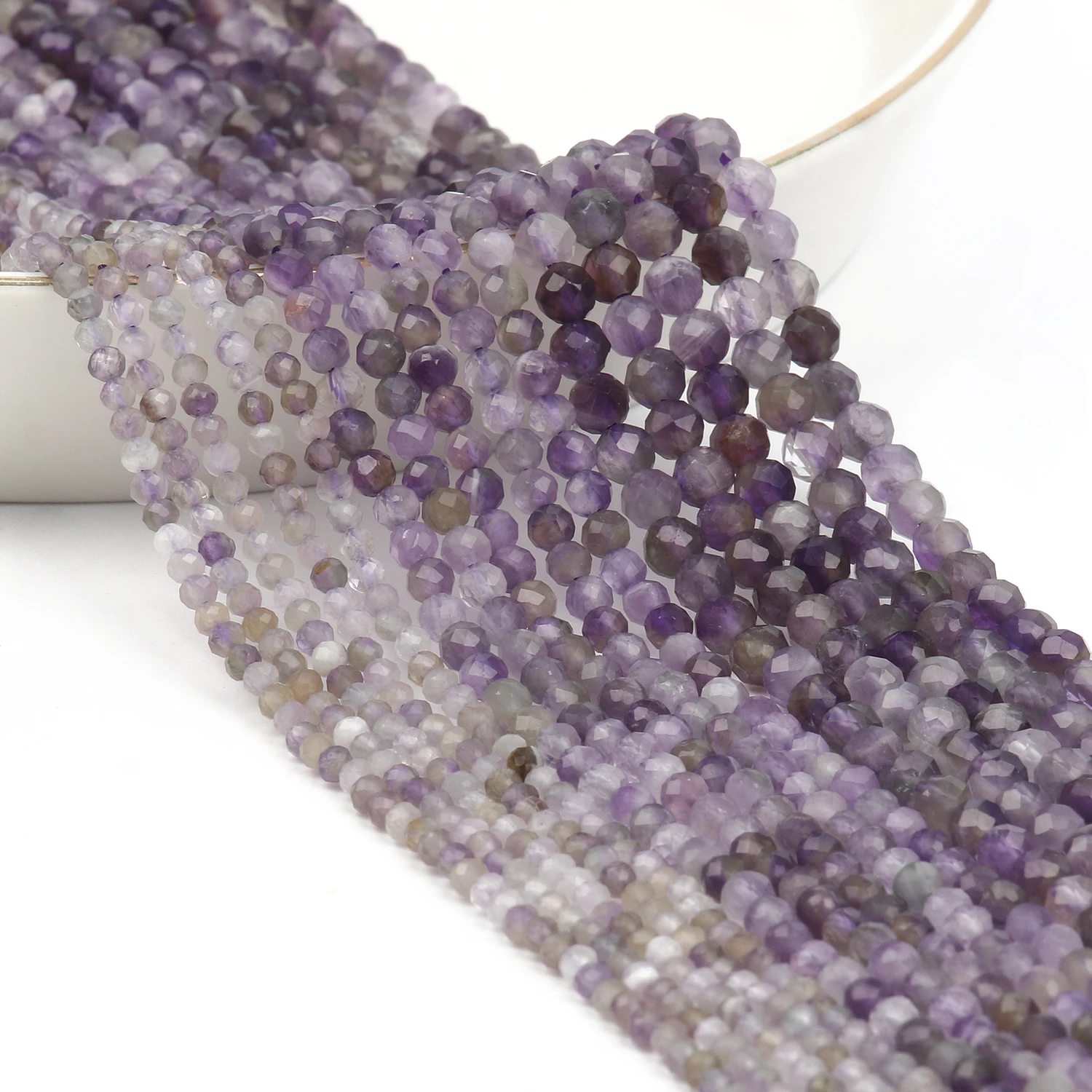 Бусины из натурального камня аметиста, граненые широкие крошечные бусины для изготовления ювелирных изделий сделай сам, для браслетов, ожерелий, 15 дюймов, 2 3 4 мм