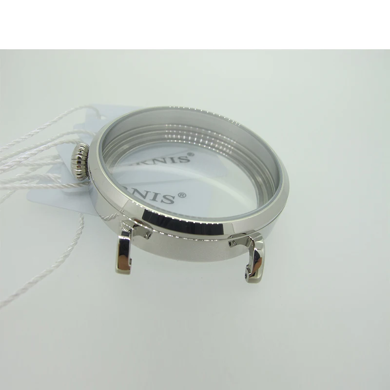46 мм Серебристый полированный чехол из нержавеющей стали для часов с механизмом 6498 6497, чехол для часов с минеральным хрустальным стеклом