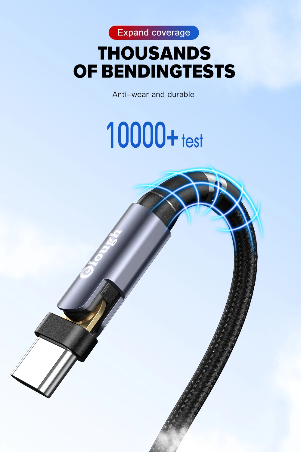 Вращающийся на 180 градусов USB-кабель типа C Elough, кабель для бы...