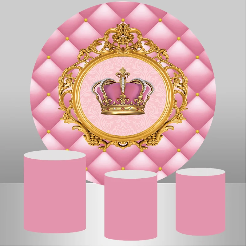 Круглая Панель Senfsun, круглая розничная девушка, день рождения, розовая Корона, декор для вечерние, CnadyTable, баннеры, чехлы