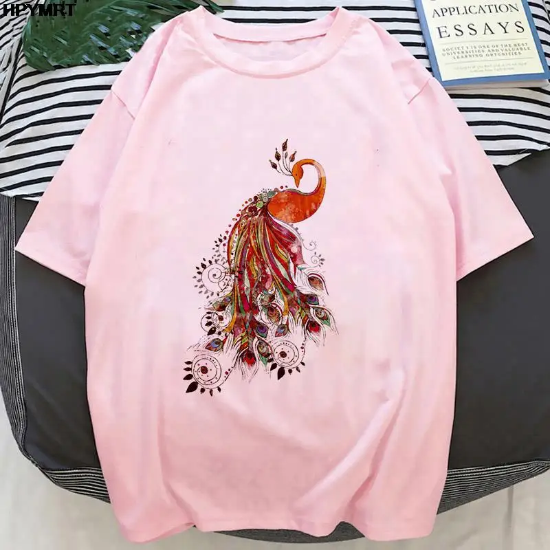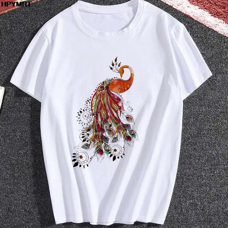 Футболка женская с принтом павлина, милый модный топ с коротким рукавом в стиле 90-х, уличная одежда, на лето