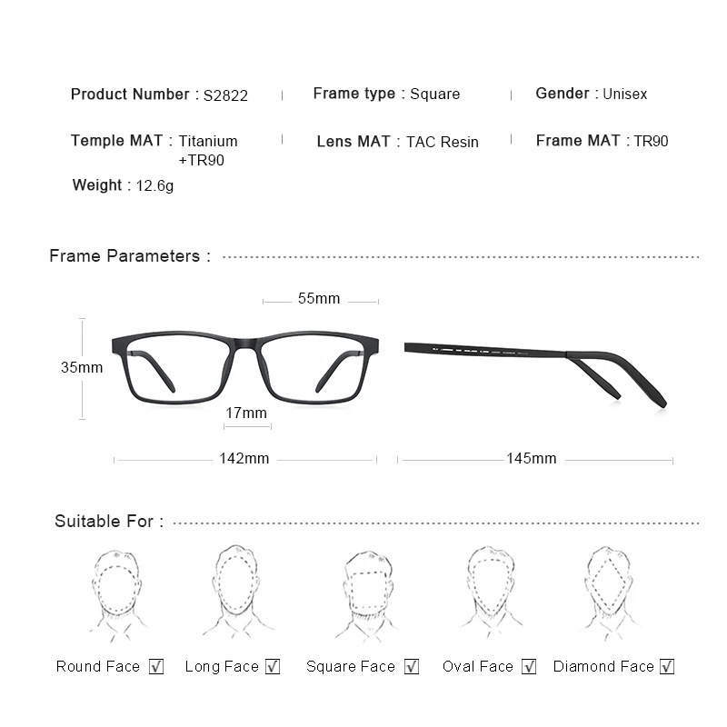 Оправа для очков Мужскаяженская из титанового сплава , S2252