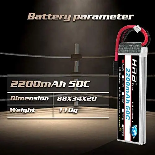 Материал: литий-полимерный; Напряжение батареи: 7,4 В; Ячейка: 2 с, емкость 2200 мАч, скорость разряда: 50C