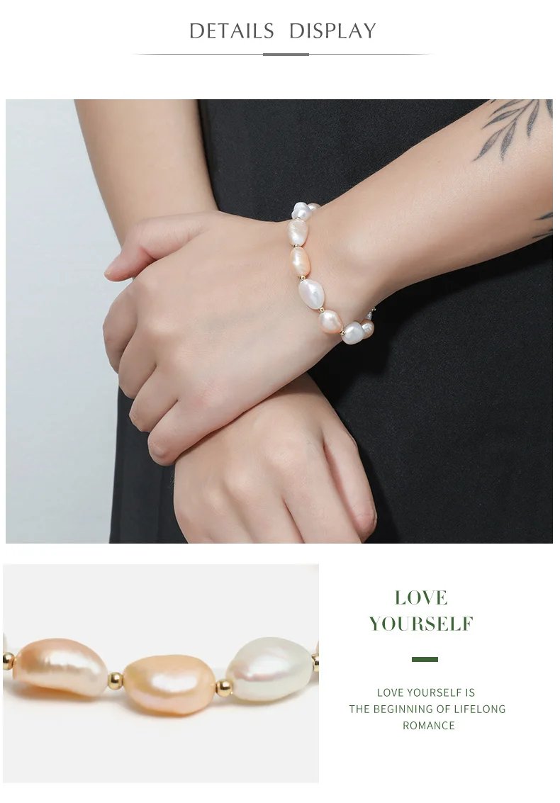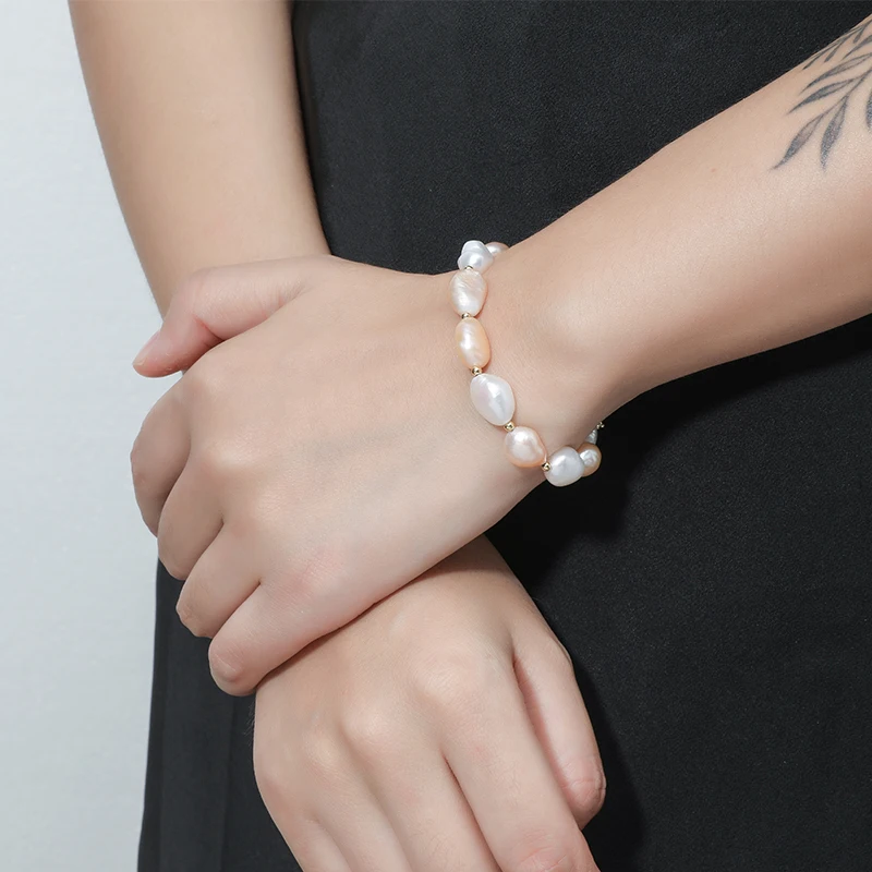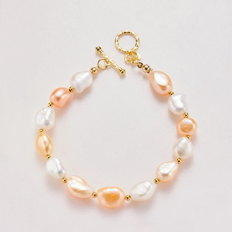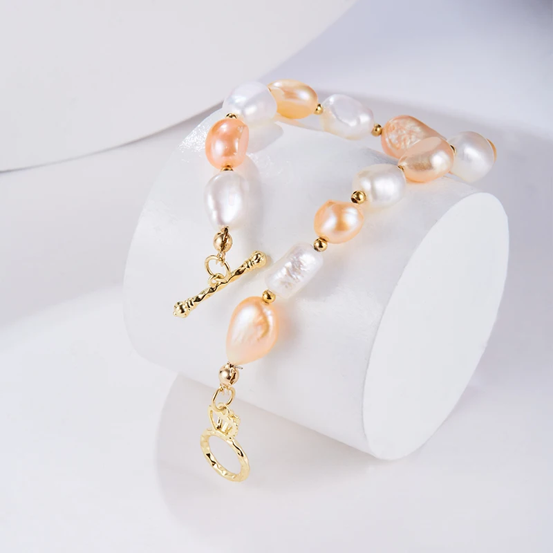 Браслет-цепочка женский из натурального пресноводного жемчуга и золота