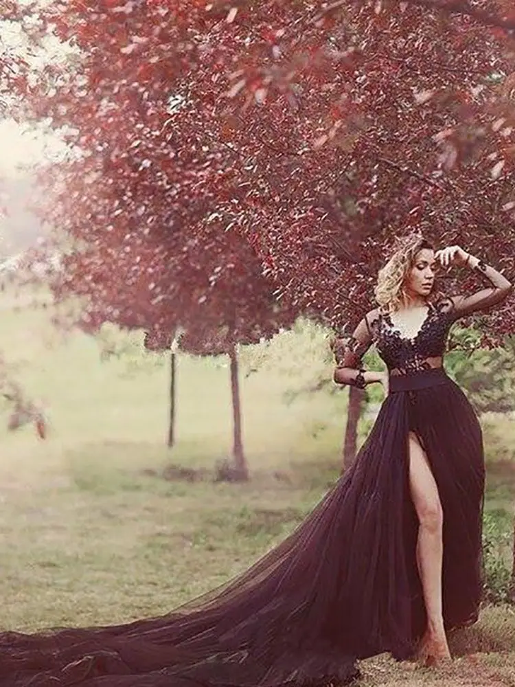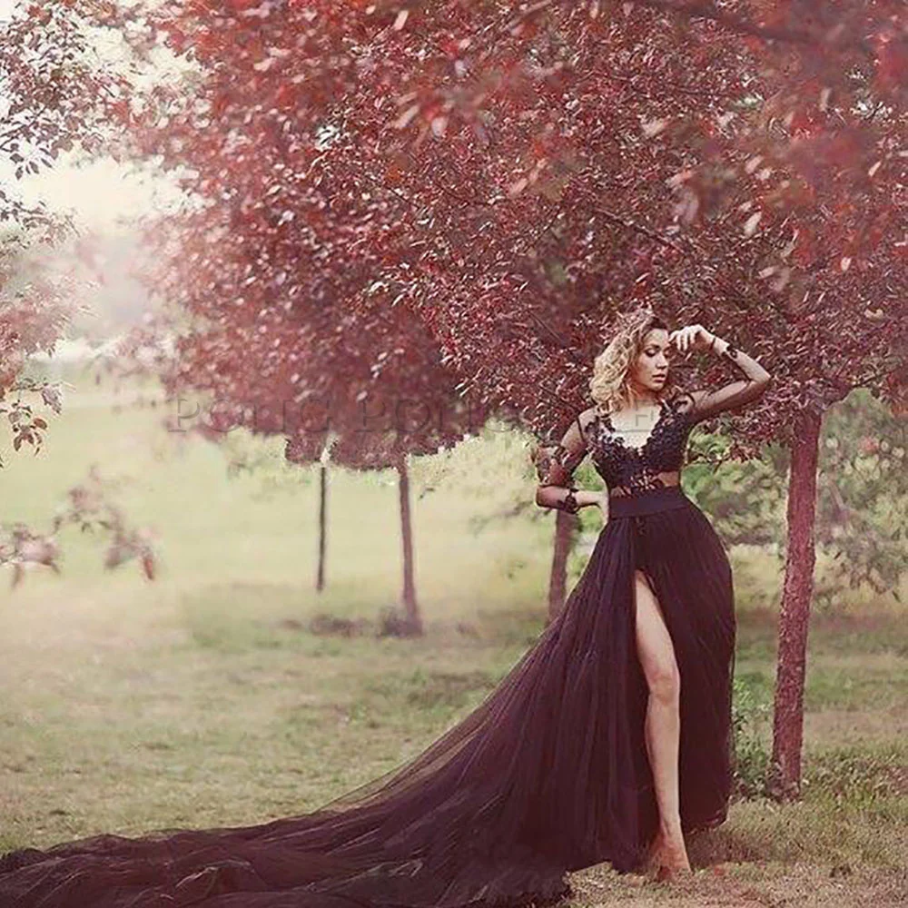 Женское свадебное платье It's yiiya, черное кружевное ТРАПЕЦИЕВИДНОЕ ПЛАТЬЕ со шлейфом и высоким разрезом на лето 2019