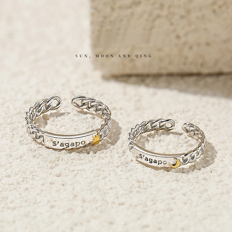 Новинка, Лидер продаж, парная Серебряная цепочка, разделенная на золото, солнце и луну, регулируемое кольцо, модные трендовые ювелирные изделия, подарок J434